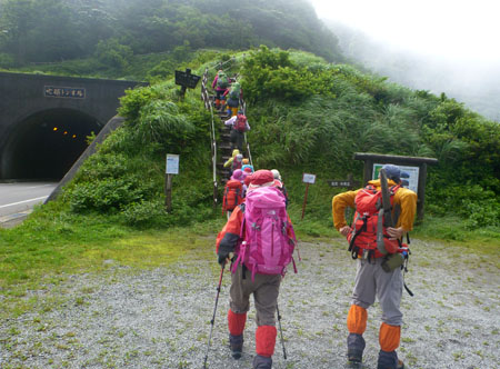 | 夏山歩荷とあって皆さんのザックは8k前後 | |