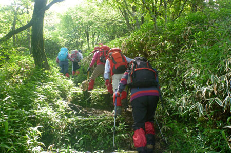 | 脊振山からクマザサの中を | |