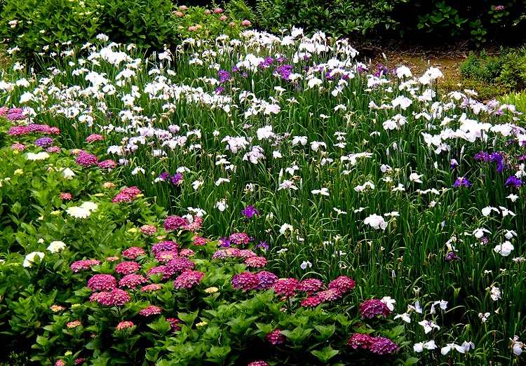 | 御手水の紫陽花と菖蒲 | |