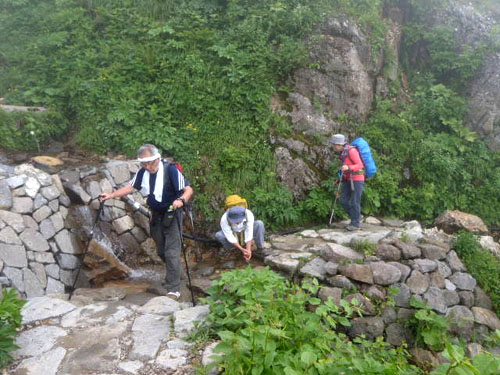 シャクナゲ平1:00~駐車場上3:40 7/28 白山温泉(永井旅館)6:25~別当出合6:40 登山口7:15~中飯場8:10~別当のぞき9:15~