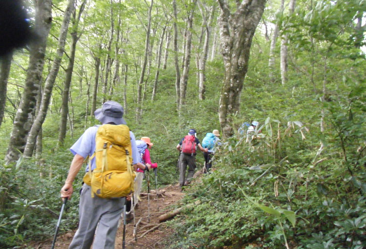 7/27 民宿5:45 カドハラスキー場6:00~リフト終点7:00~シャクナゲ平9:15~荒島岳11:00 11:40~