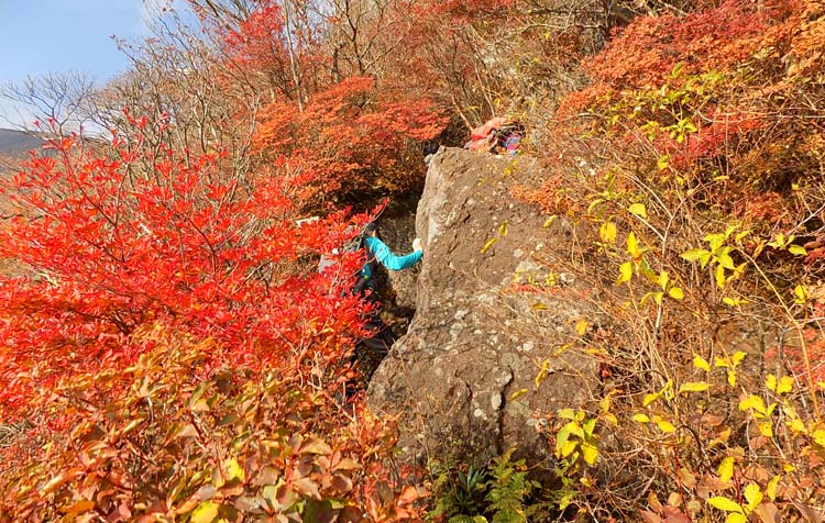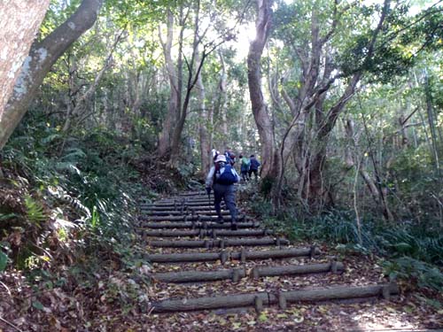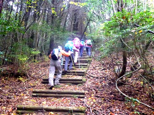 今回は予報に反し穏やかな天気の中 登りも下りも階段が多い山行でした