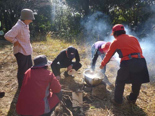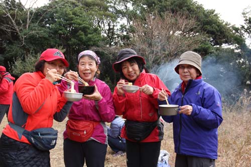 岩屋山東屋で南稜鍋 田中オ・田中チ・本村・中ノ瀬ファミリー・久保ファミリーは岩屋山まで登る