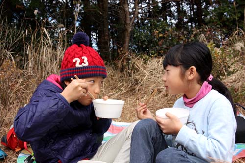 (子ども4人はピョンピョン跳ねて岩屋山へ) |