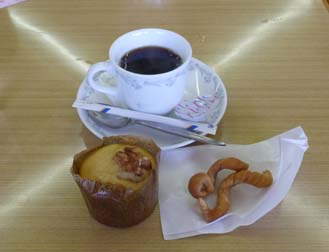 ![]() 千枝子さん手作りのケーキでコーヒーを