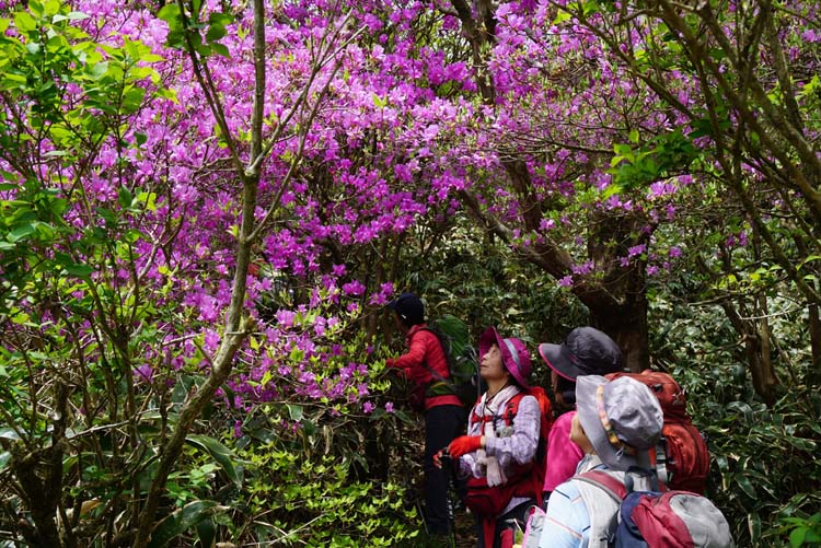 ミツバツツジのトンネルを