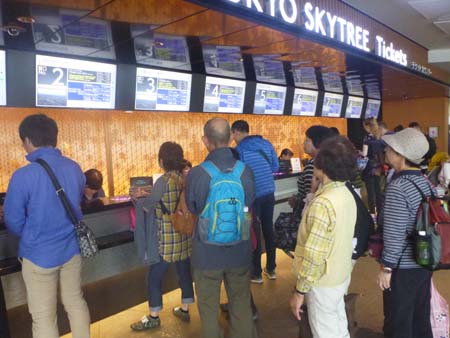 スカイツリーへ 手際よく受付を済ませる令子さん