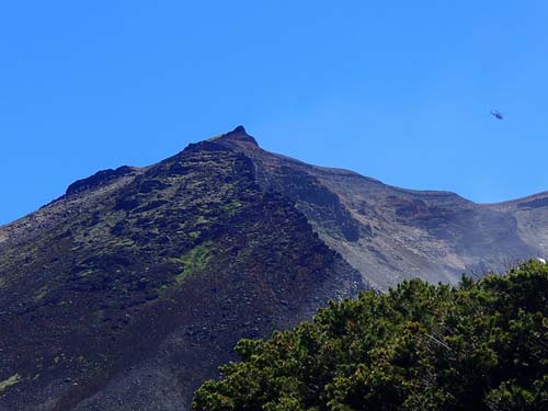 見ると地獄谷の方に人影が 救助のヘリコフターが飛んできました