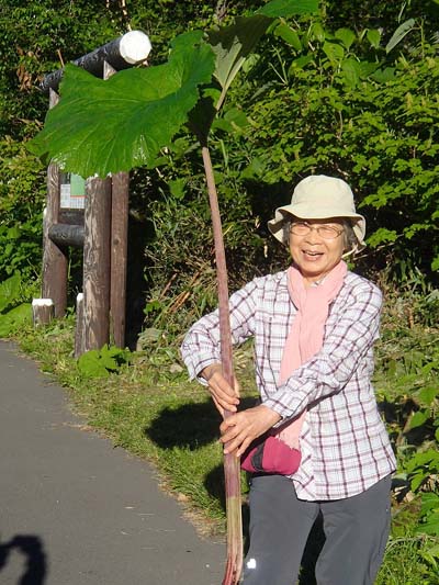 大きな蕗を傘代わりにして 千枝子さん撮影 |