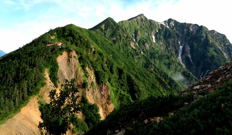 鹿島槍ヶ岳と手前冷池山荘