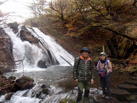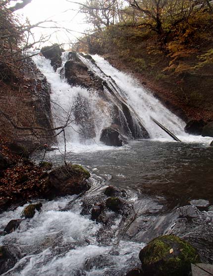 男池から30分歩丸太の階段を上り下りしてたどり着く |