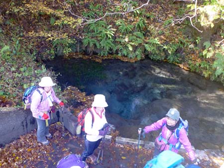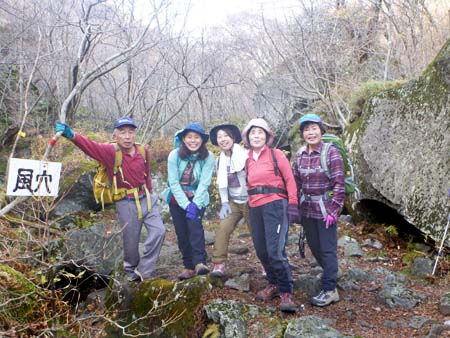 ◆参加者 L 田中オ 吉田・酒井マ・酒井ミ・田中チ・井上・木田・福井 一般1人(福井さんのお友達) 会員 8 名 ◆コース 男池駐車場発10:30〜男池〜かくし水〜ソババッケ〜風穴〜往復〜駐車場15:55 (散策コースはソババッケから滝へ) 帰りは温泉へ *今回は久々山行の方々がそろいました |