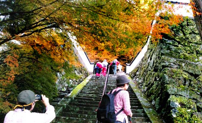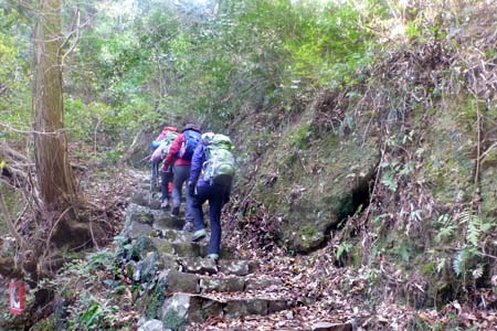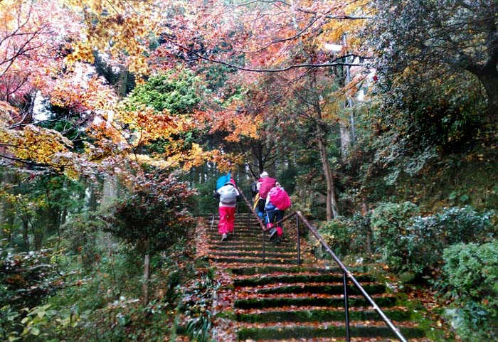 登り始めはすぐに石段