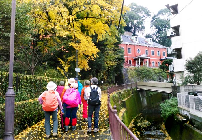 紅葉の中を