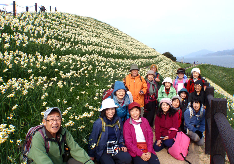 | ★参加者 田中オ・久保ヒ・久保ク・林田・中原・高平ノ・高平レ 会員7名 一般11名 ★コース 11:20野母バス停発~12:00権現山展望台(昼食)12:40発~1:50水仙の里~解散 |