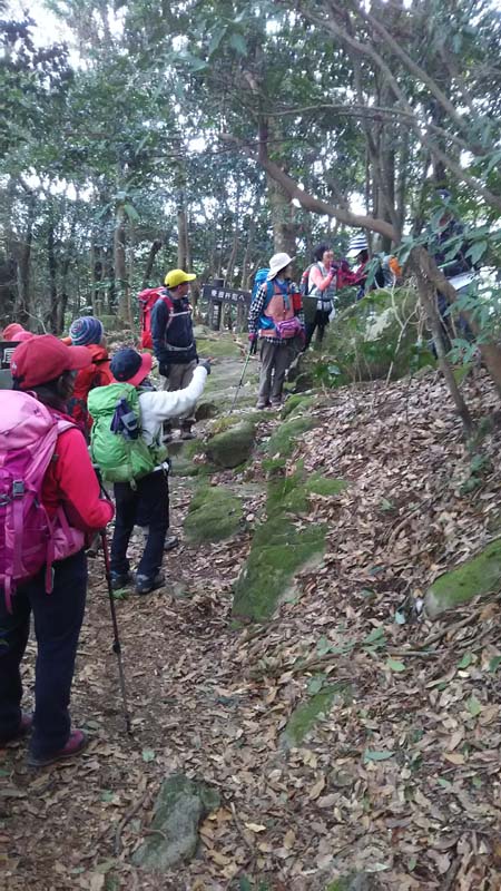| ★参加者 田中オ・松尾ア・久保ヒ・久保ク・井川キ・本村 6 名 ★コース 〈3コース〉集会所発10:45~取付点11:06~川棚越線峠12:00(昼食)12:30~稜線縦走~ 虚空蔵山頂15:25~集会所17:00 |