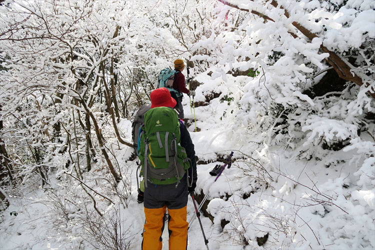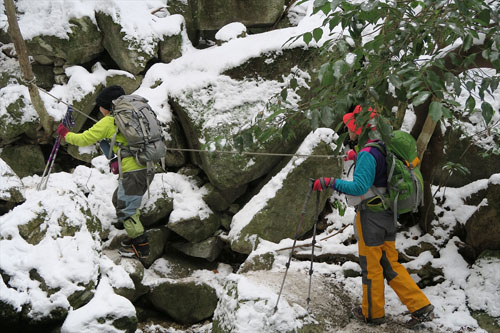 端っこを歩く 最後までアイゼンはつけたままで