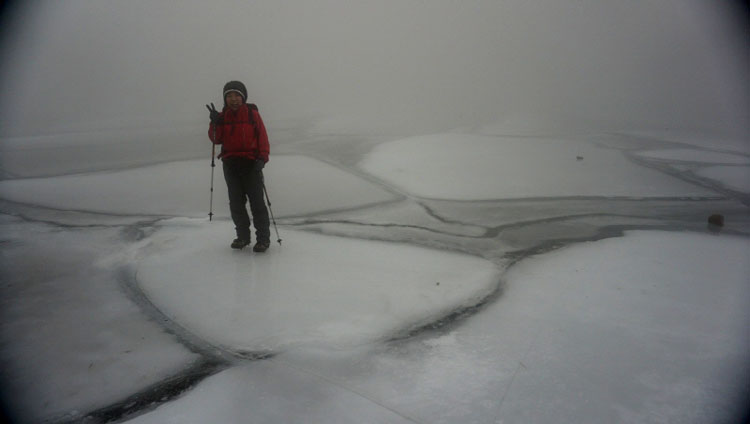 御池はガチガチ凍って でも今回は中ほどは歩きませんでした