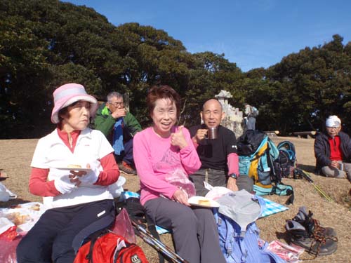 | ★参加者 田中オ・前田・久保ヒ・久保ク・井上・林田・木田・高平ノ・高平レ・ 一般 元会員菱川さん 10 名 ★コース 10:00岩屋神社~11:15頂上(歓迎会、昼食)~13;35岩屋神社 元会員の菱川(今岡ルミ)さんが帰省されて、一緒に岩屋山に登り旧交を温めました |