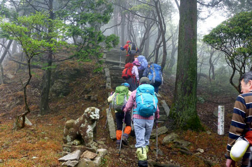 ◆参加者 L久保ヒ 松尾ア・中ノ瀬・酒井マ・酒井ミ・久保ク・井川ノ・高平ノ・田平レ・松尾ノ・本村 会員 11 名 ◆コース 1日目 大村PA5:30〜佐賀関フェリー10:00発〜三崎港着〜宇和島〜観光(宇和島 国安の里・宇和島城)金龍荘着 2日目 金龍荘発〜滑床万年橋〜登山口発7:40〜三本杭山頂12:30〜分岐〜登山口着16:15〜山里の家(小学校跡)着18:45 3日目 山里の家発〜篠山登山口8:00〜山頂9:10〜登山口着10:20 三崎港発15:30〜佐賀関着17:45〜長崎着 |