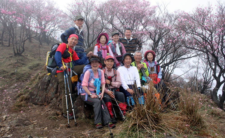 アケボノツツジに囲まれて みんなセレモニー用の写真を撮る