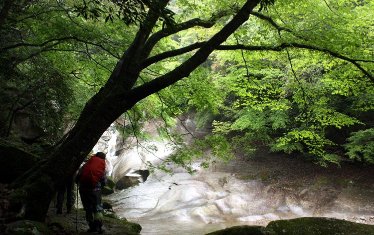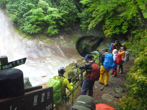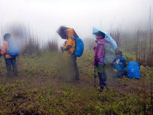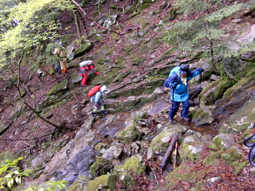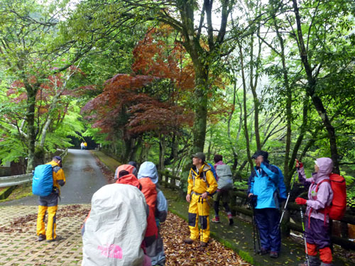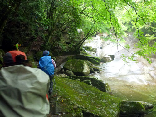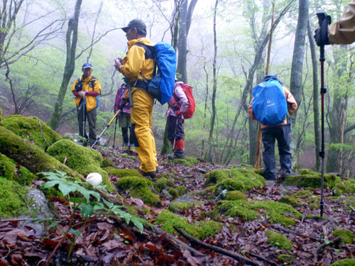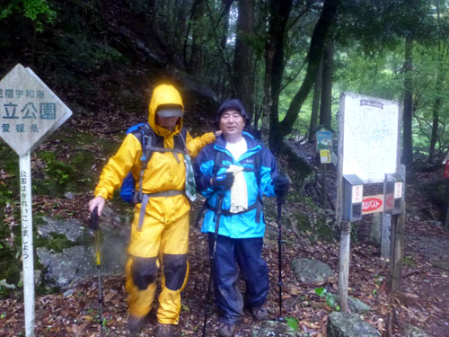 ◆参加者 L久保ヒ 松尾ア・中ノ瀬・酒井マ・酒井ミ・久保ク・井川ノ・高平ノ・高平レ・松尾ノ・本村 会員 11 名 ◆コース 1日目 大村PA5:30〜佐賀関フェリー10:00発〜三崎港着〜宇和島〜観光(宇和島 国安の里・宇和島城)金龍荘着 2日目 金龍荘発〜滑床万年橋〜登山口発7:40〜三本杭山頂12:30〜分岐〜登山口着16:15〜山里の家(小学校跡)着18:45 3日目 山里の家発〜篠山登山口8:00〜山頂9:10〜登山口着10:20 三崎港発15:30〜佐賀関着17:45〜長崎着 初日は宇和島観光 武家屋敷《国安の郷》・ワシントンヤシ通りを通って宇和島城 1日目の宿金龍荘着 食事なしの3000円は超安 しかし 水回りのトラブルで断水、 御主人がタンクにせっせと運ばれます。 2日目 歩きはじめから雨具を着る 途中脱いだり、着たり 三本杭はガスっています。集合写真を撮って足早に下山、山頂直下から シャクナゲの群生、本日の山はこれで帳消し 3日目 篠山 これまたアケボノツツジの群生 |