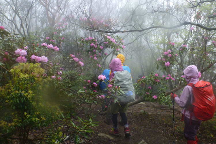 三本杭山頂直下はシャクナゲの群生地 その規模たるや九州山系ではその類を見ないほど