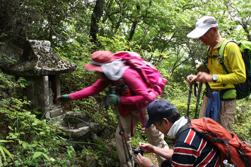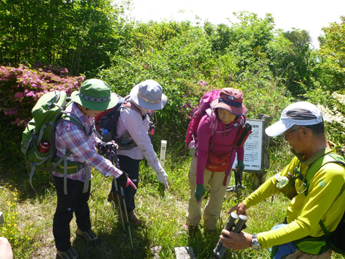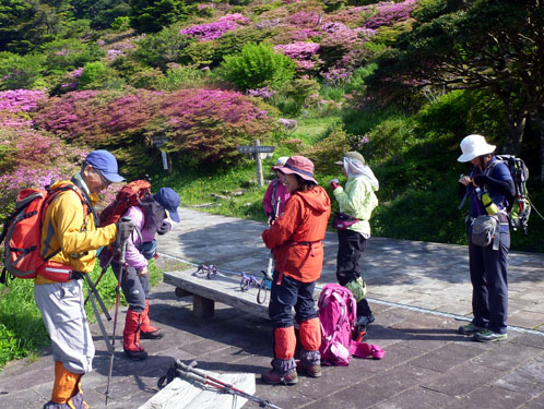 ◆コース・その他 宝原駐車場発9:10発〜矢岳山頂10:10〜地獄11:00〜原生沼〜絹笠山11:55〜隠れキリシタン〜白雲の池着13:30 宝原のミヤマキリシマはそろそろ終わり、矢岳山頂から見る仁田峠はピンクの色が鮮やか、地獄に下り原生沼は カキツバタが見頃 絹笠山の山頂広場の片隅にキンランが3株咲いていた。 白雲の池の手前から隠れキリシタン跡に行ってみる。 |