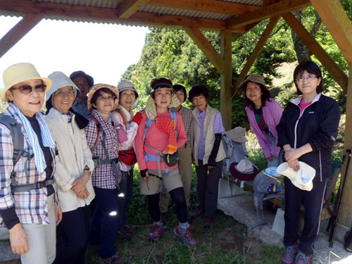◆コース・その他 琴ノ尾登り口発11:20〜扇塚峠11:42〜自己紹介して11:50発〜琴ノ尾岳山頂12:30〜昼食13:30発〜 本川内駅14:25 JR14:39 予想最高気温25度。 舗装道路ばかりの登山道を心配していましたが、 さわやかな天候の中 時々吹く風も心地よく 和気あいあいと楽しく山行できました。 |