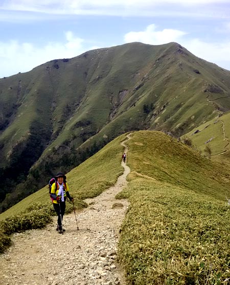 国見岳山頂 ストックをザックにしまいこれから国見尾根へ