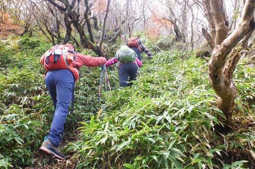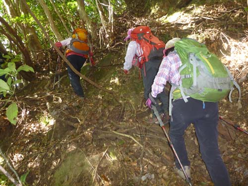 急登につぐ急登とやぶ漕ぎ、危険個所を過ぎました