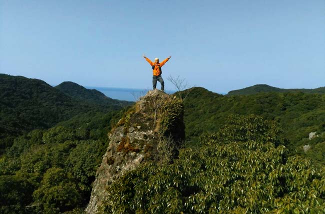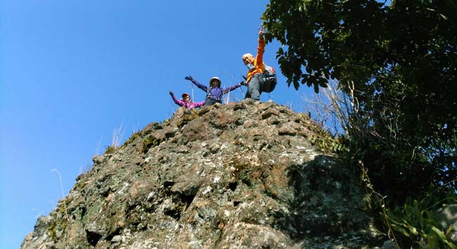 3人が登ったローソク岩 ↑ ↓ 《オーコワ!! ローソク岩》