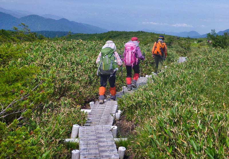 | 大日平小屋からカンカン照りの木道を 約40分の木道歩き |