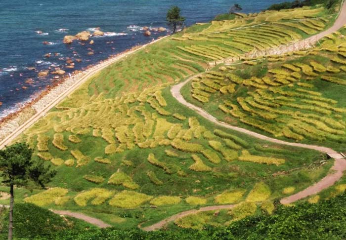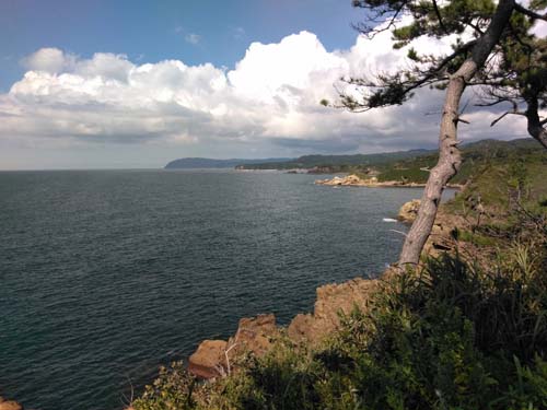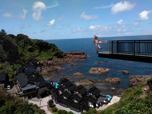 能登半島突端空中展望台 眼下にランプの宿あり |