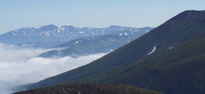 ◆参加者 L.井川ノ 井川キ・福浦 会員3名 一般1名 ◆コースタイム: 7/6(土)北麓野営場4:36~利尻山頂10:15(昼食)11:10~北麓野営場15:16 7/8(月)望岳台登山口5:30十勝岳9:30(休憩) 10:30~望岳台登山口13:40 |