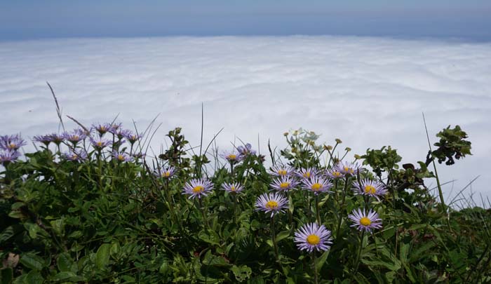 | 雲の上に頭を出している利尻山 | 山頂はもう一息 |