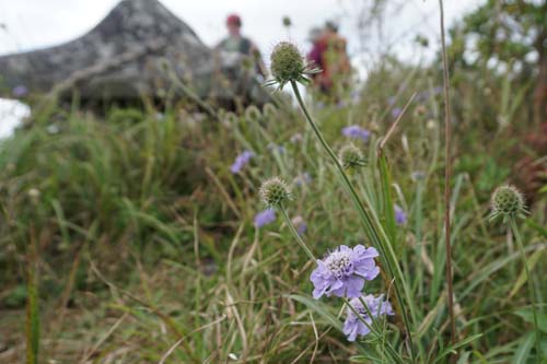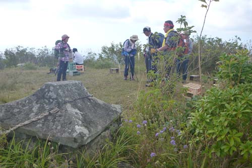 | 山頂広場 足元にはいくつもの座り箱あり 四囲遮るものはないが遠くの山々はわからない |