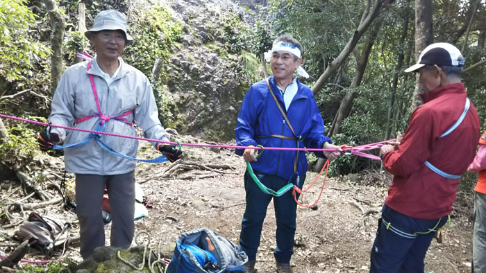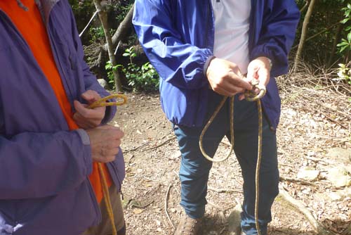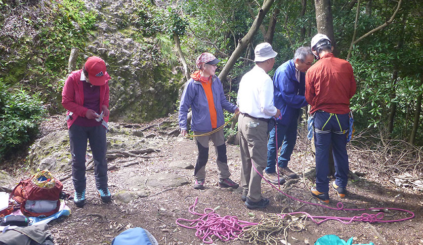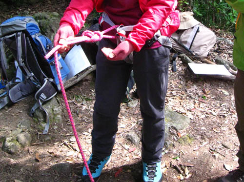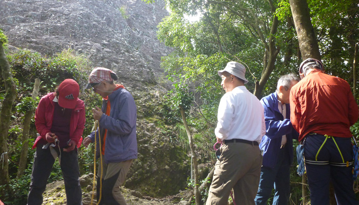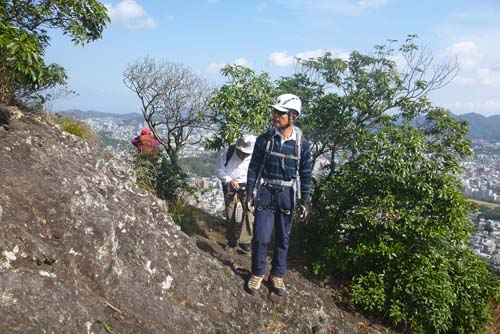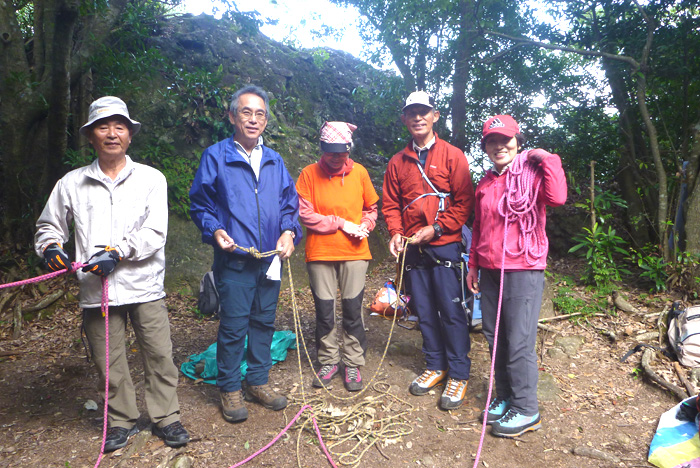 ★参加者 L泉 照美 酒井マ・井川ノ・井川キ・本村・松雪 会員 6名 ★ コース 稲佐山運動公園10:00~権現岩へ ★その他 午前中はカラビナ、シュリンゲ、ロープの結び方、午後から岩訓練 |