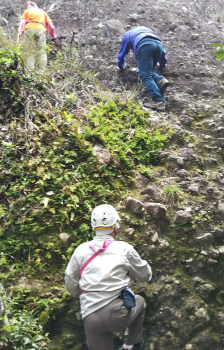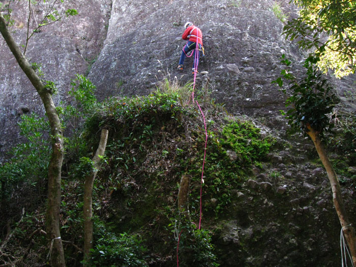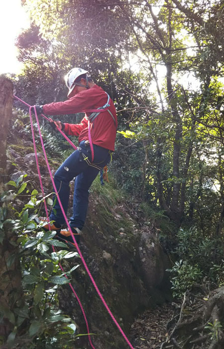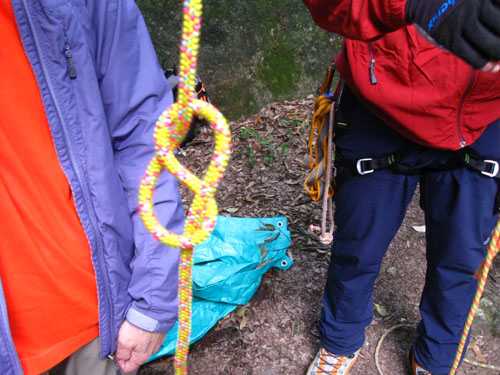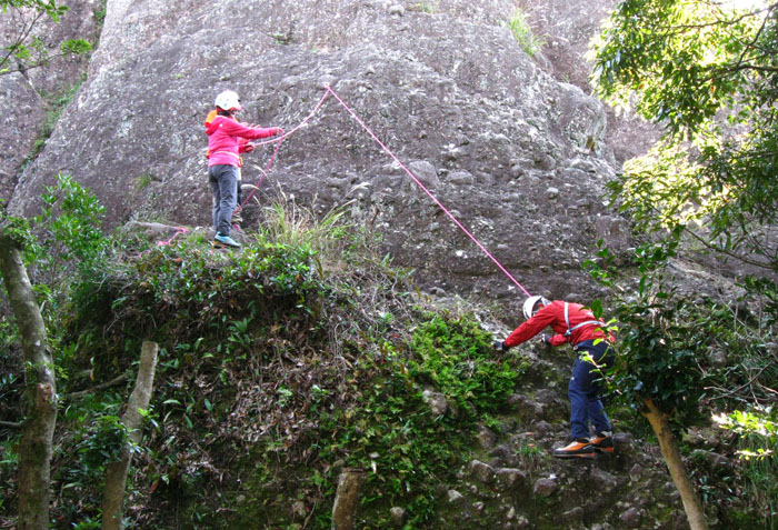 | 懸垂下降のトレーニング いろいろな降り方を 井川キさん撮影 ↑↓ | |