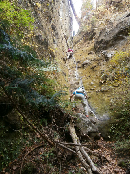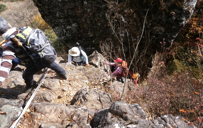 | 岩の痩せ尾根を登る | |