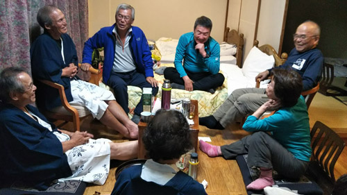 | シャクナゲ荘 山談義がはずみます | 豊前坊出発 |