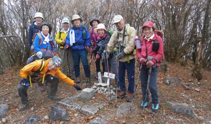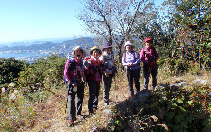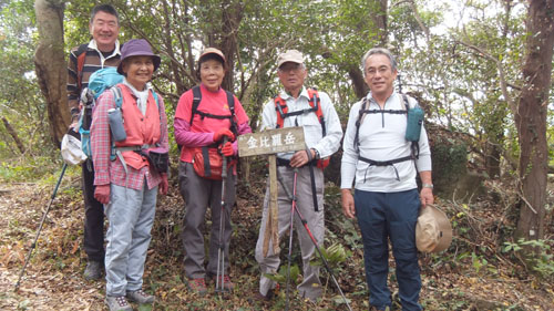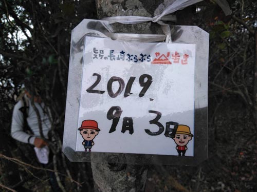 | 林道組と悪所岳山頂で合流 | 『ヒロスケの長崎ぶらぶら歩き』の掲示札も山頂にありました |