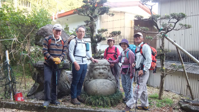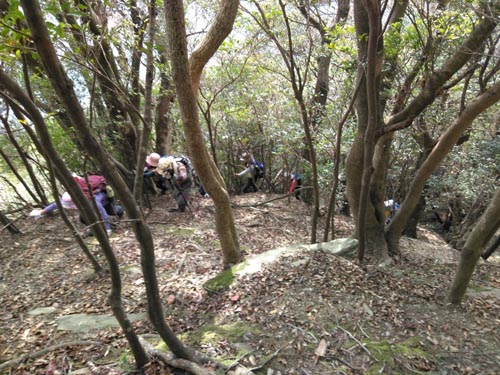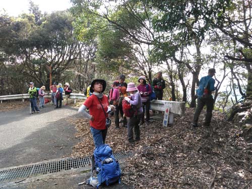 ★参加者 L久保ヒ 松尾ア・久保ク・木田・井上・高平ノ・高平レ・清水・尾上・松雪・林 会員 11名 一般14名 ★ コース 宮摺バス停9:30~尾根道と林道との分岐10:30~悪所岳11:30昼食下山開始12:15~熊ケ峰山頂12:50~ 烏帽子岩13:45~小ヶ倉水源地解散15:20 ★その他 4年余りにわたって歩いてきた近郊の山50座の最後の山です 今回は急登あり、アップダウンの繰り返しであり、長い舗装道路の歩きありと、変化に富んだ厳しい山行でしたが、 一人の落伍者もなく歩き通せました。 最後の烏帽子岩からは出発地の宮摺海水浴場が見下ろされ、ここまで歩いてきた山並みを感慨深げに見渡すことが できました。 これまで参加いただいた大勢の皆様本当にありがとうございました。 |