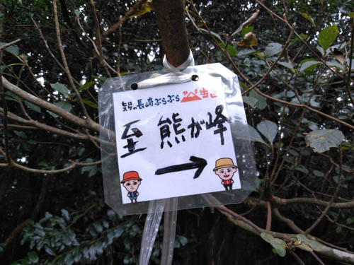 | 熊ケ峰山頂にも | 小ヶ倉水源地まで5.2キロの掲示板を確認して気合を入れます |