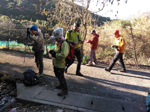 平山の市民農園で体操の後、出発準備