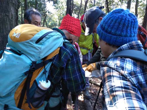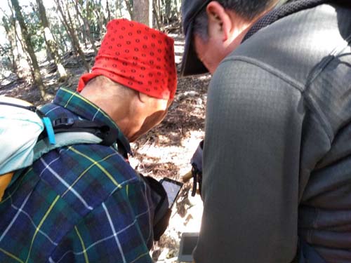 わかりにくい下山道をスマホで確認しています