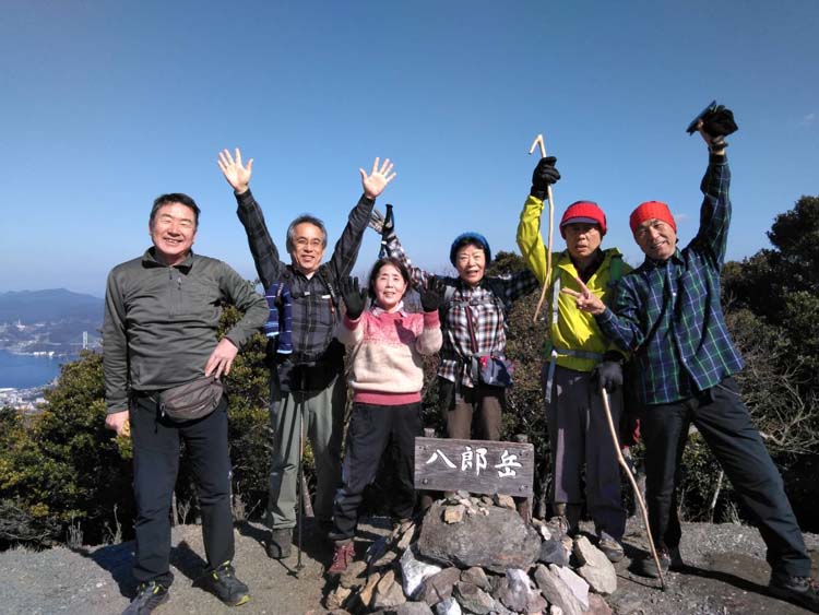 | ◆参加者 L.高平レ 井上・高平ノ・木田・松尾ノ・尾上 会員6名 一般1名 ◆コース・その他 平山〜小八郎〜八郎岳〜兜岳〜北兜岳 八郎岳山頂からは遠くの島々までくっきり見え、気持ちのいい早春の山歩きでした。 めったに足をのばすことのない兜岳にも行きました。 |