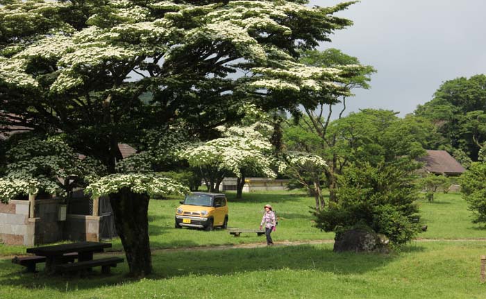 集合1時間前に田代原キャンプ場のヤマボウシを撮りました 満開です